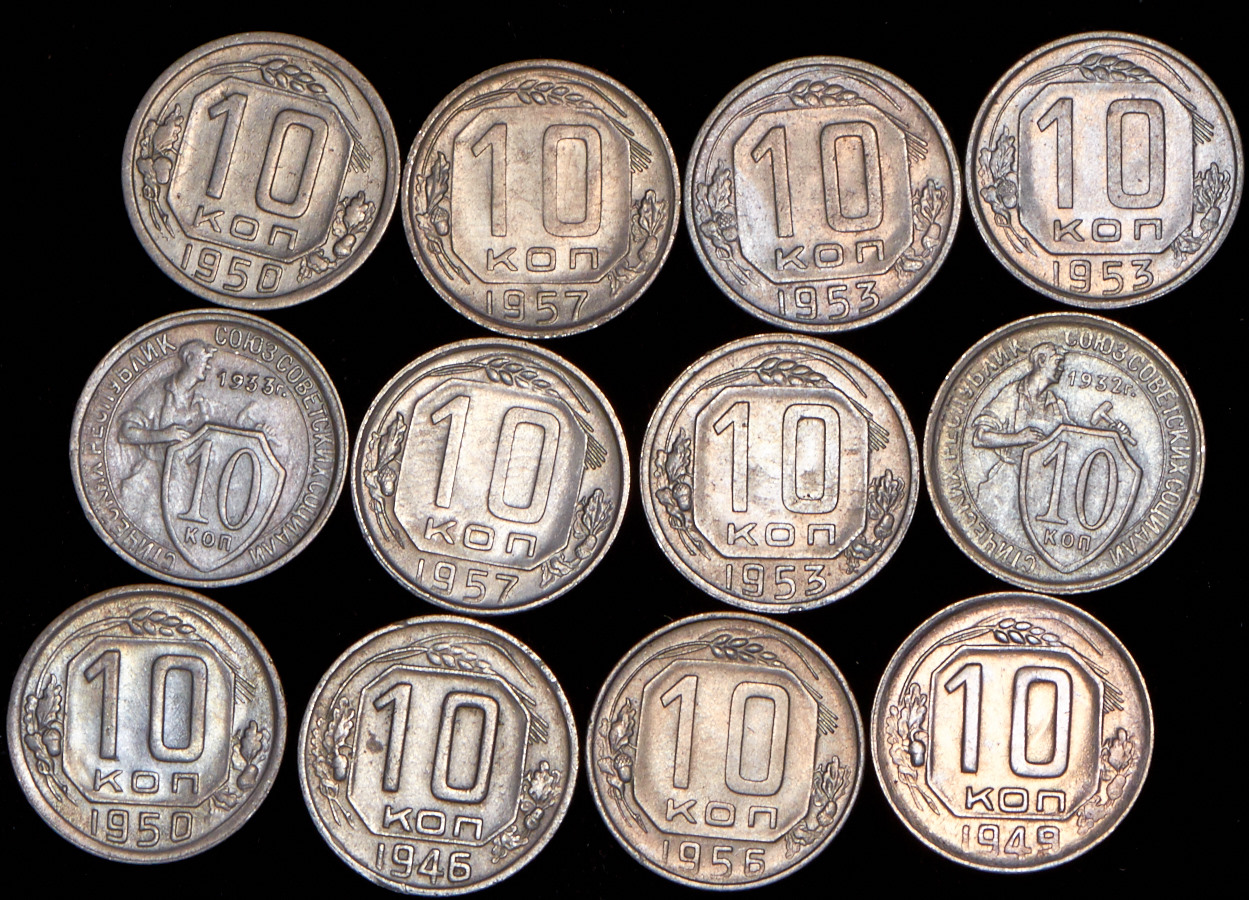Набор из 12-ти монет 10 копеек (СССР)