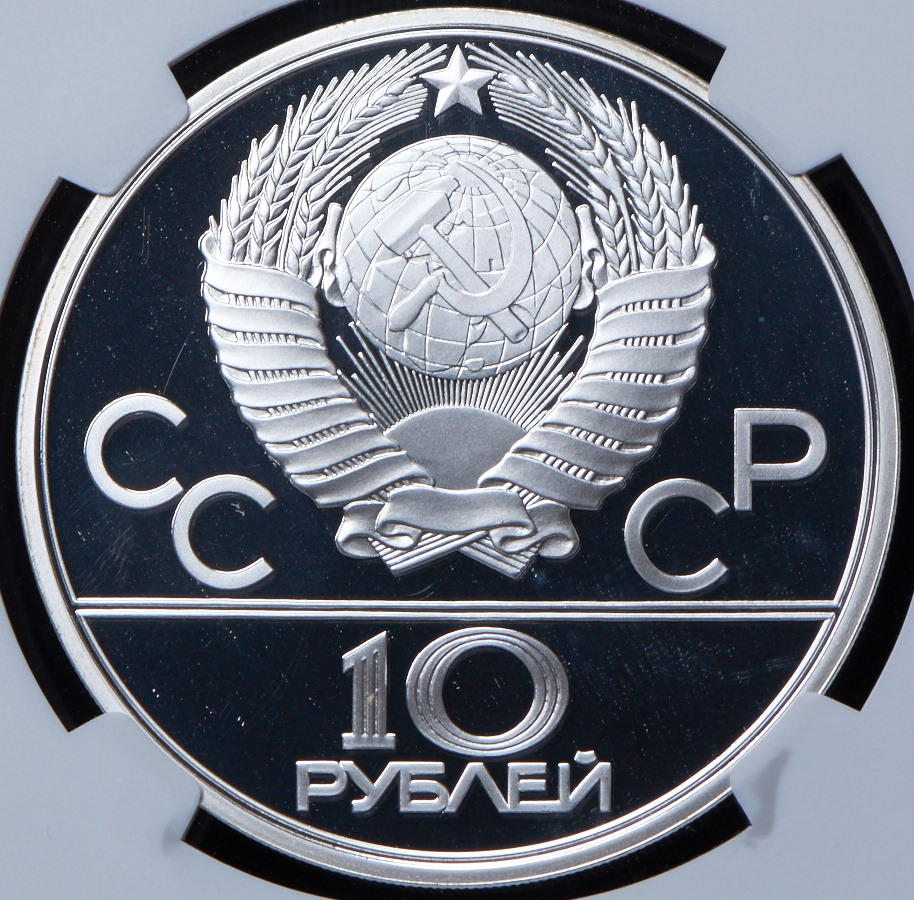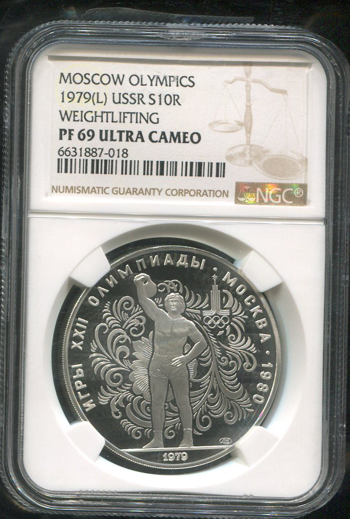 10 рублей 1979 "Олимпиада 1980: Поднятие гири" (в слабе) ЛМД