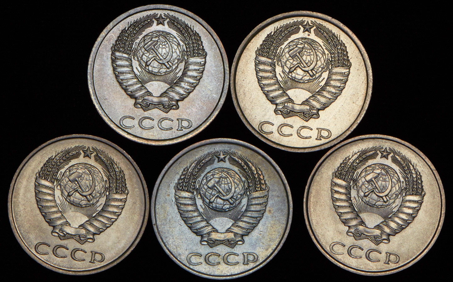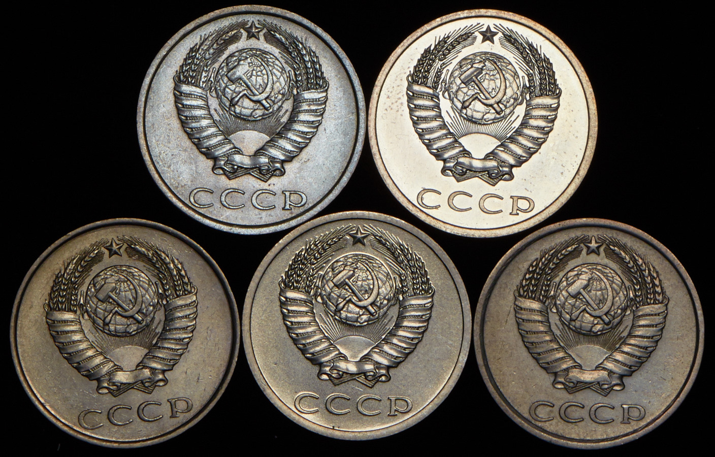 В набор вошли 20 копеек 1980 (Федорин 138 50уе.), 20 копеек 1981 (Федорин 143), 20 копеек 1982 (Федорин 145), 20 копеек 1983 (Федорин аверс 97, реверс 149), 20 копеек 1984 (Федорин 153 шт. т.н. "перепутка" шт. 3.2 от 3 копеек 1979), 20 копеек 1985 (Федорин 156 шт. т.н. "перепутка" шт. 3.2 от 3 копеек 1979), 20 копеек 1986 (Федорин 158 шт. т.н. "перепутка" шт. 3.2 от 3 копеек 1979), 20 копеек 1987, 20 копеек 1988 (Федорин 163), 20 копеек 1989 (Федорин 167).