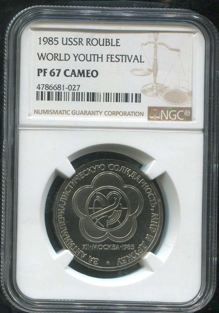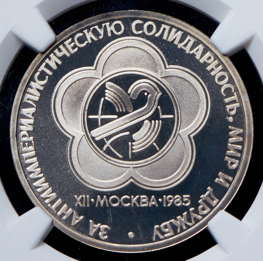 Рубль 1985 "XII Всемирный фестиваль молодежи и студентов в Москве" (в слабе)