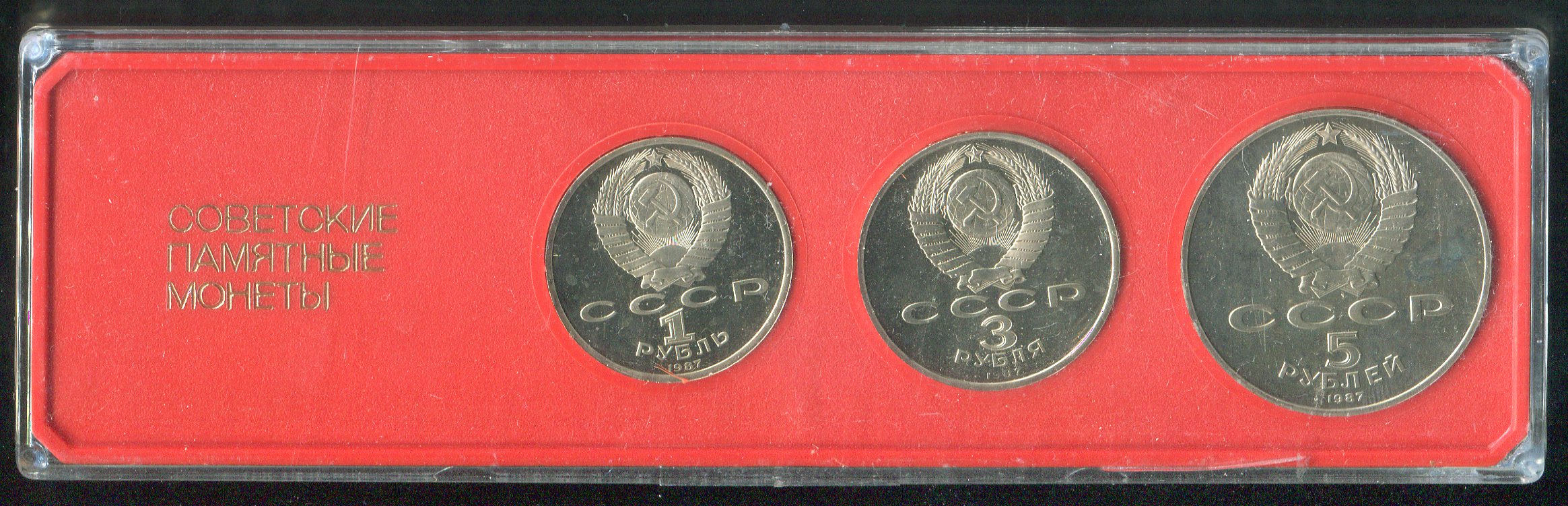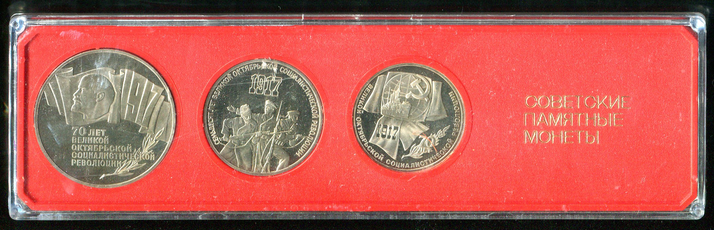 Набор из 3-х памятных монет "70 лет Революции" (в п/у)