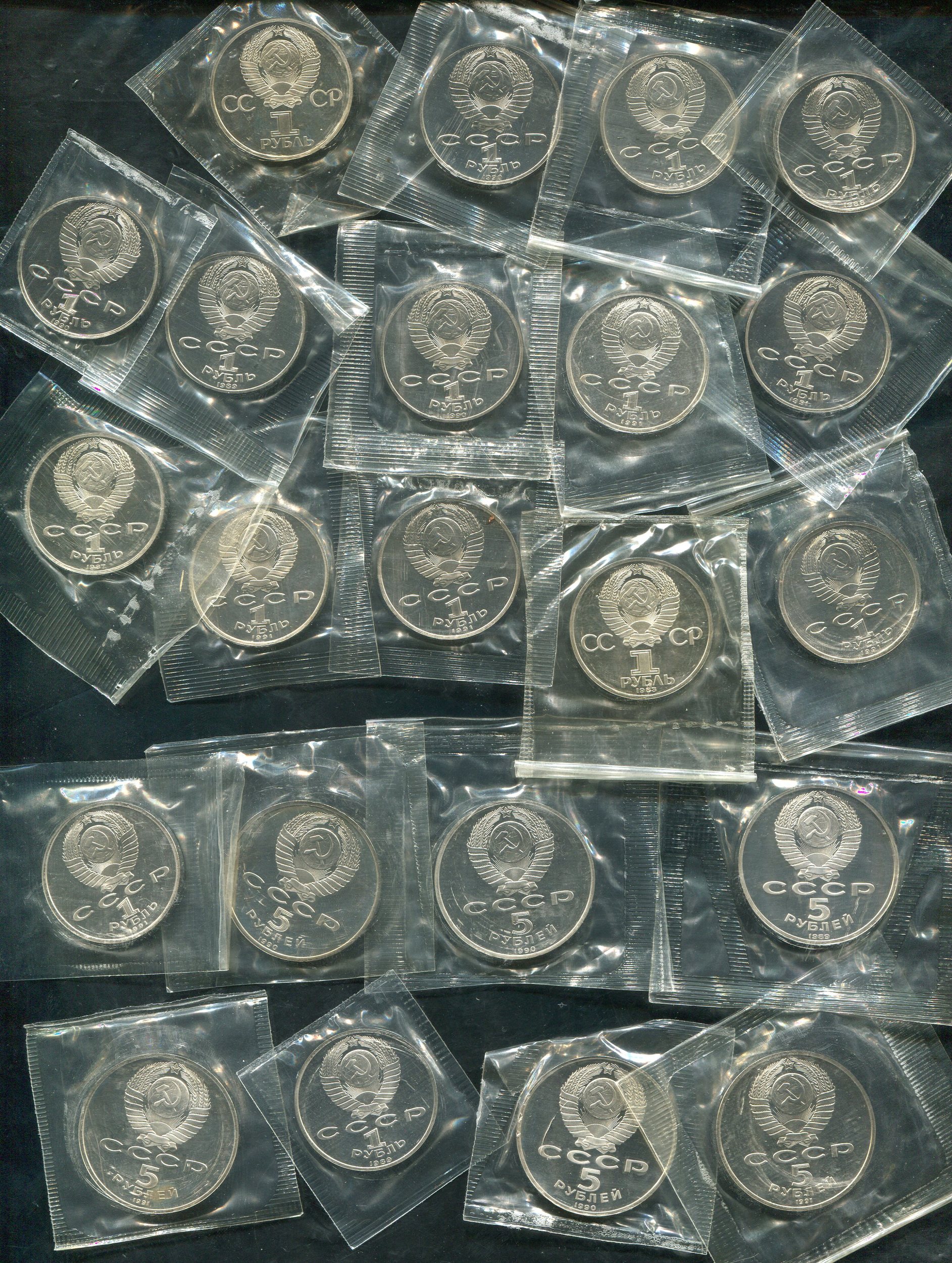 1 рубль - 16 шт. 5 рублей - 6 шт.