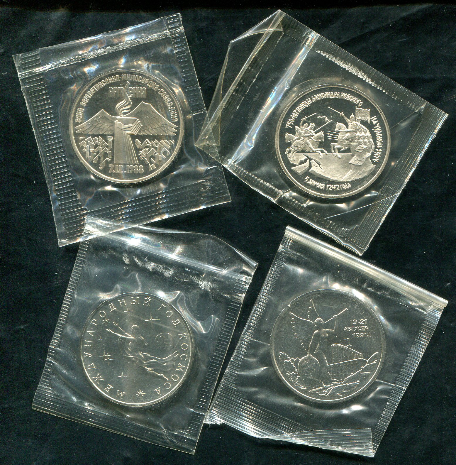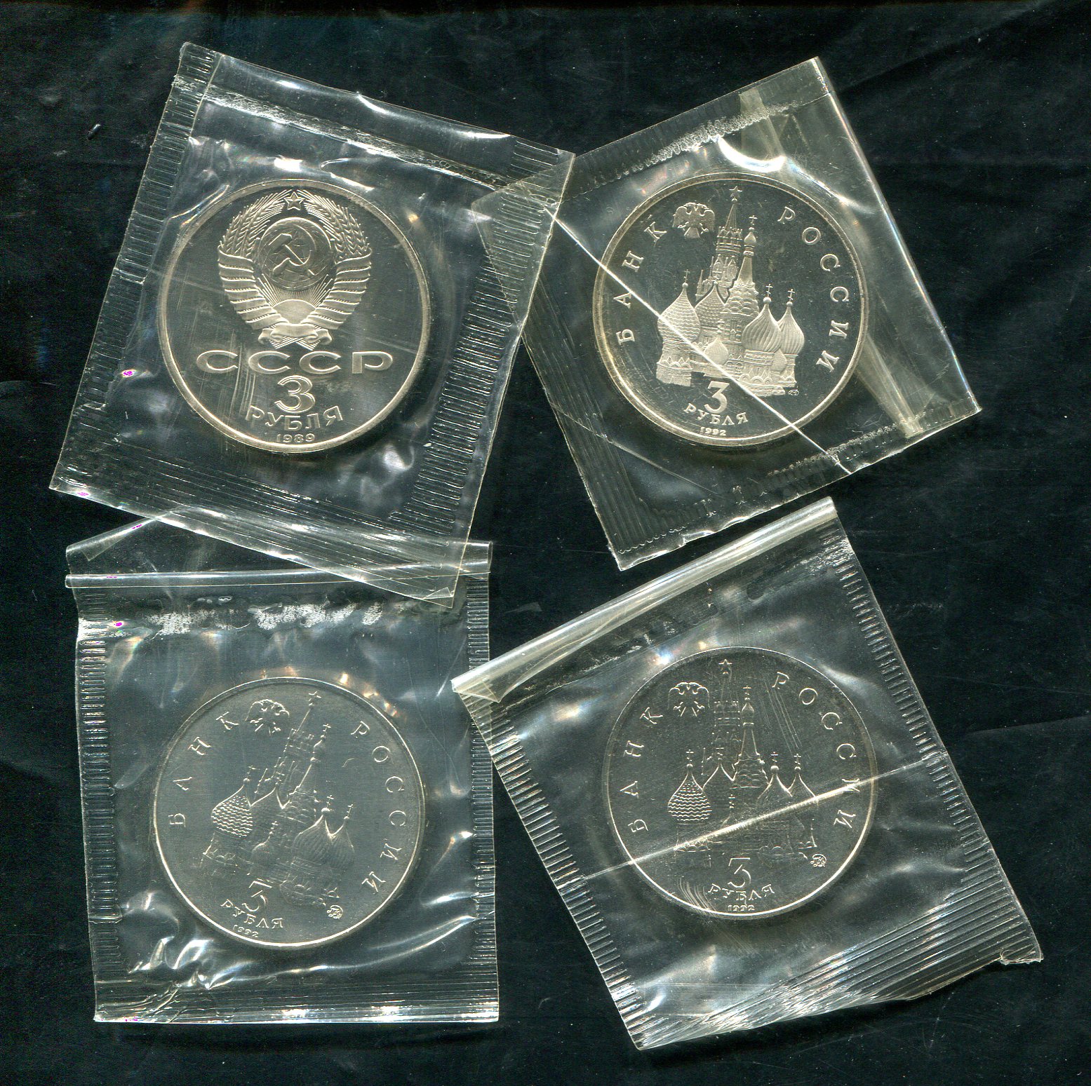 Набор из 4-х монет 3 рубля (СССР, РФ) (в запайках)