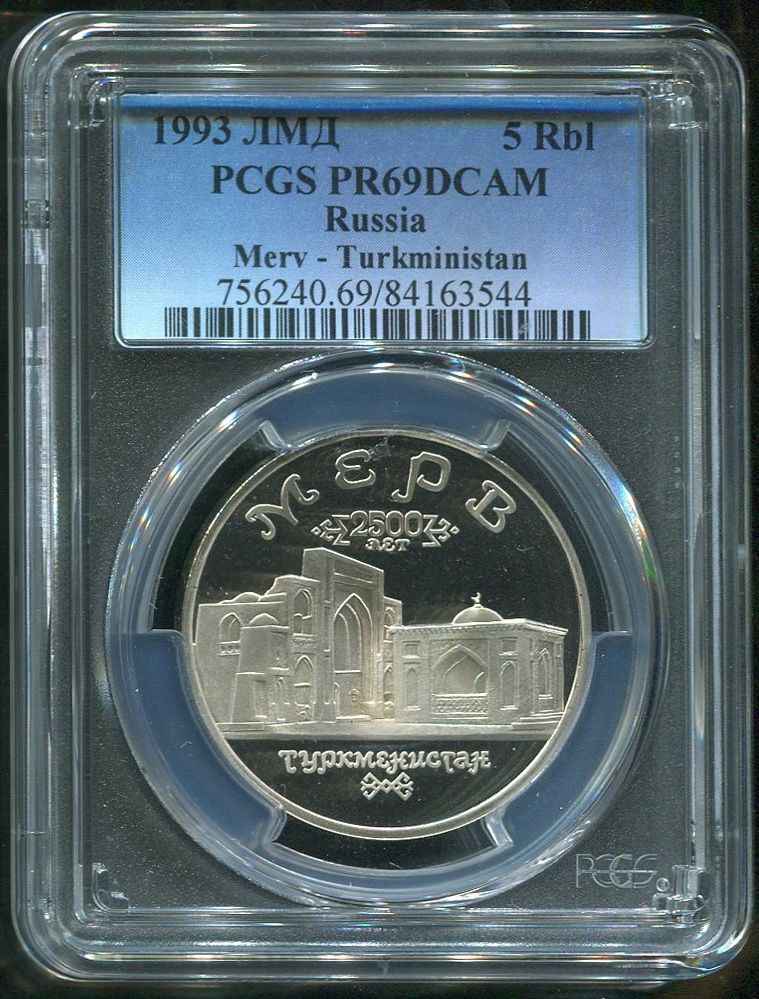5 рублей 1993 "Мерв" (в слабе) ЛМД