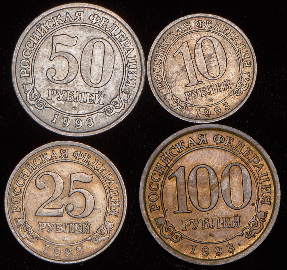 Набор из 4-х монет о.Шпицберген 1993 года: 100, 50, 25 и 10 рублей.