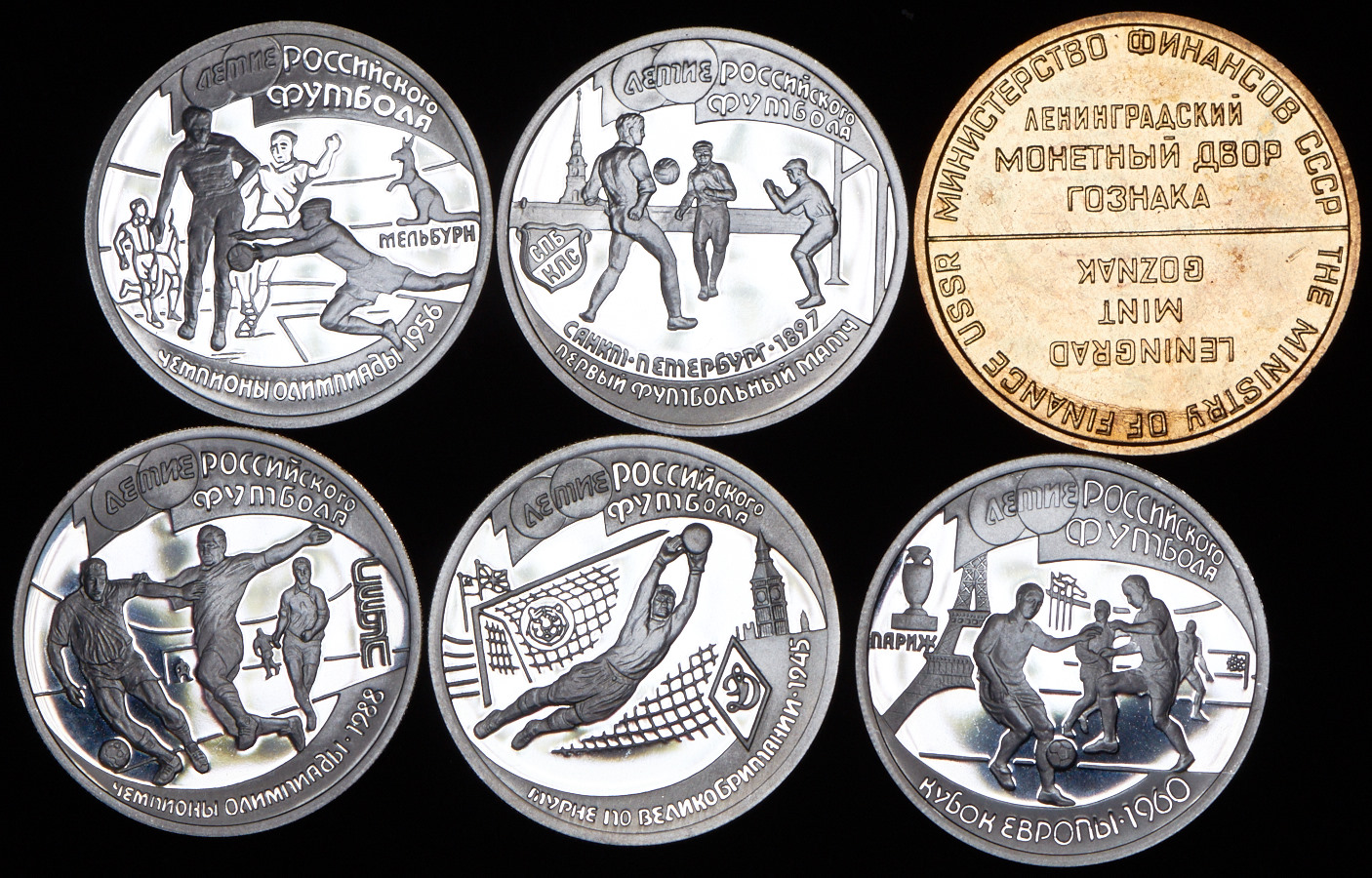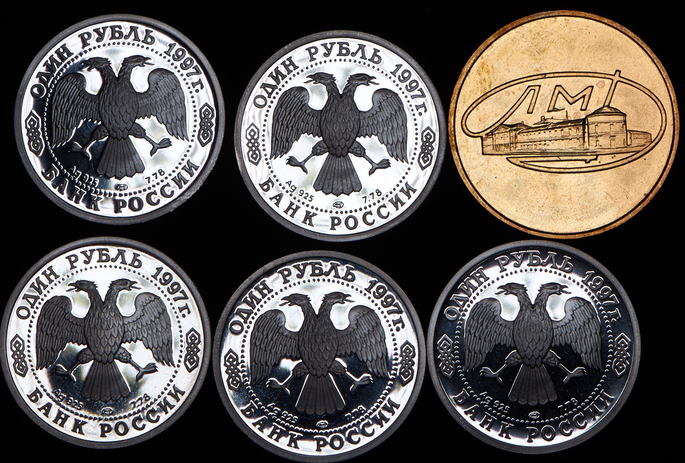 Набор из 5-ти сер. монет Рубль 1997 "Чемпионат мира по футболу-98" с жетоном