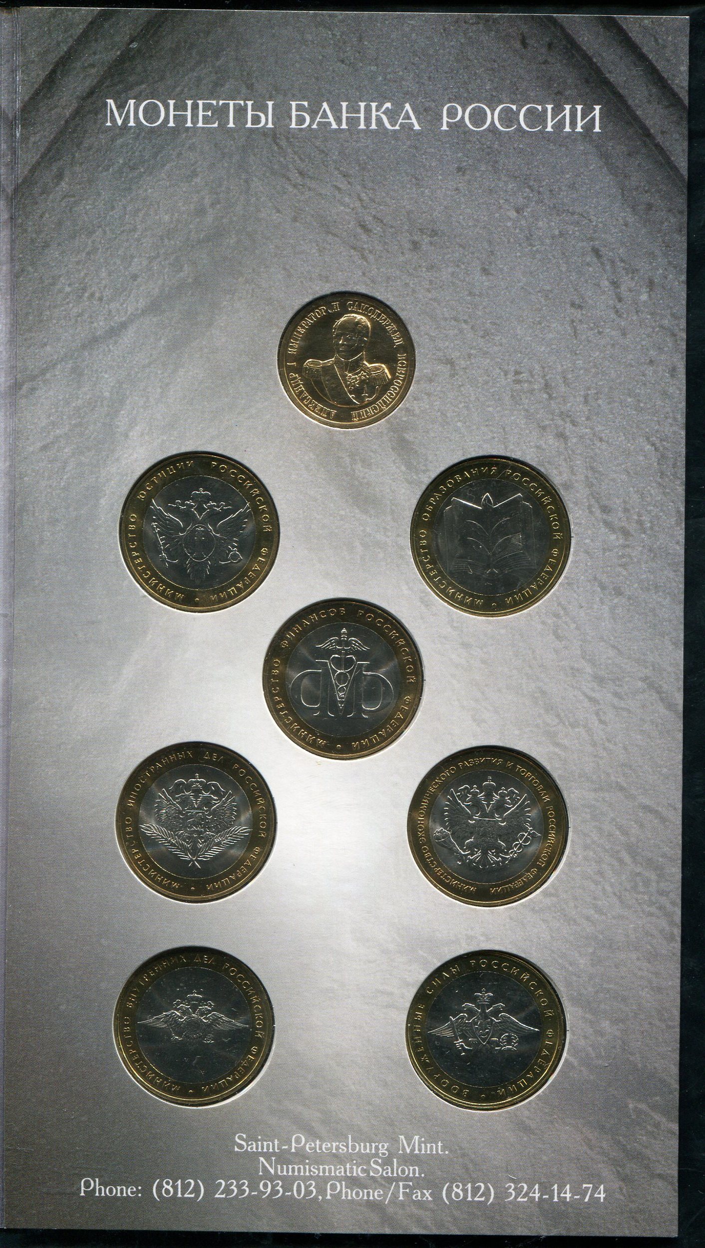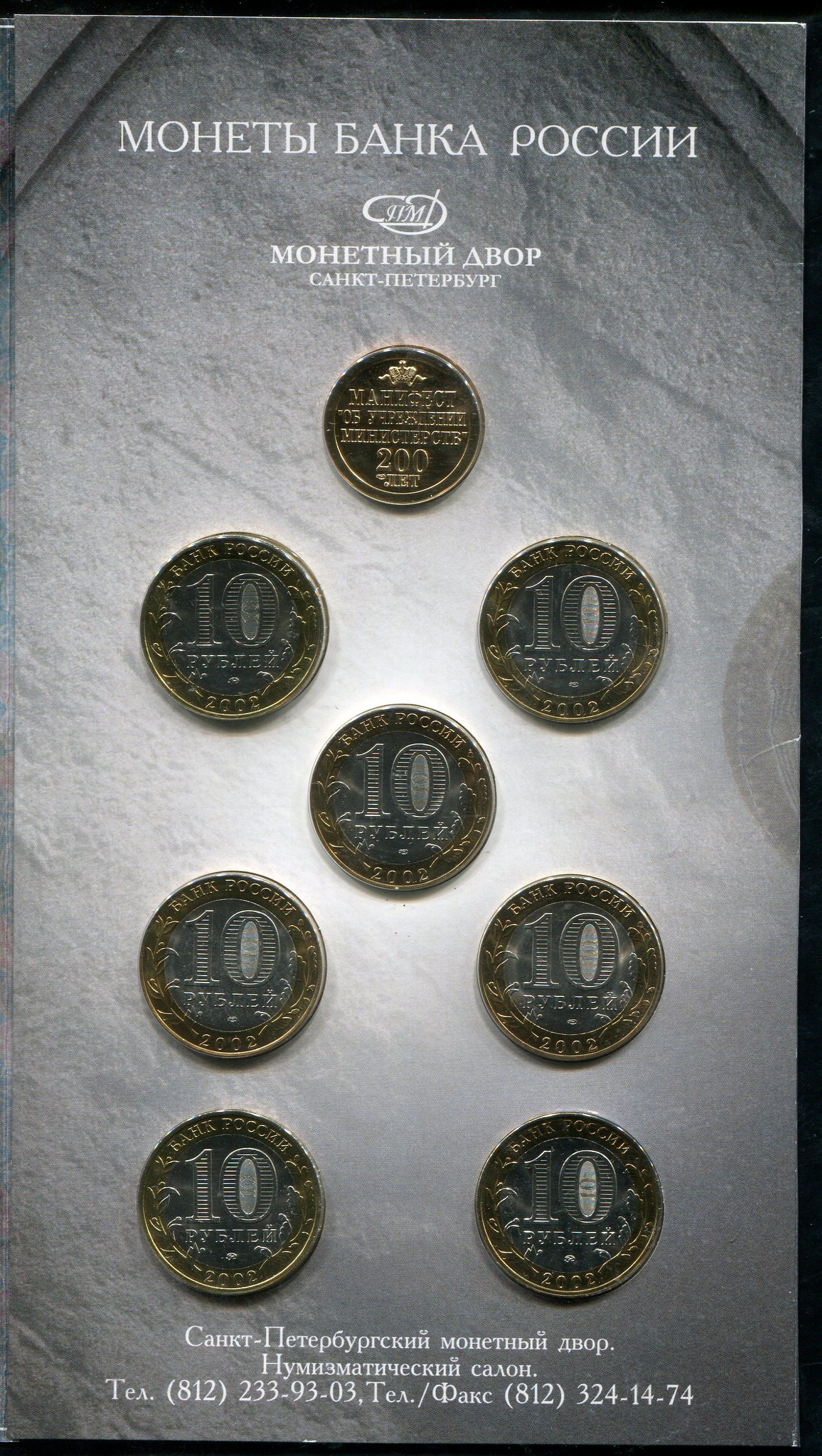 Набор из 7-ми монет 10 рублей 2002 "Манифест об учреждении министерств 1802-2002" (в п/у)