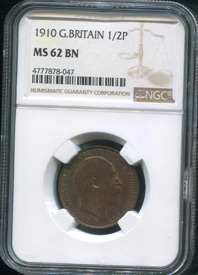 1/2 пенни 1910 (Великобритания) (в слабе)