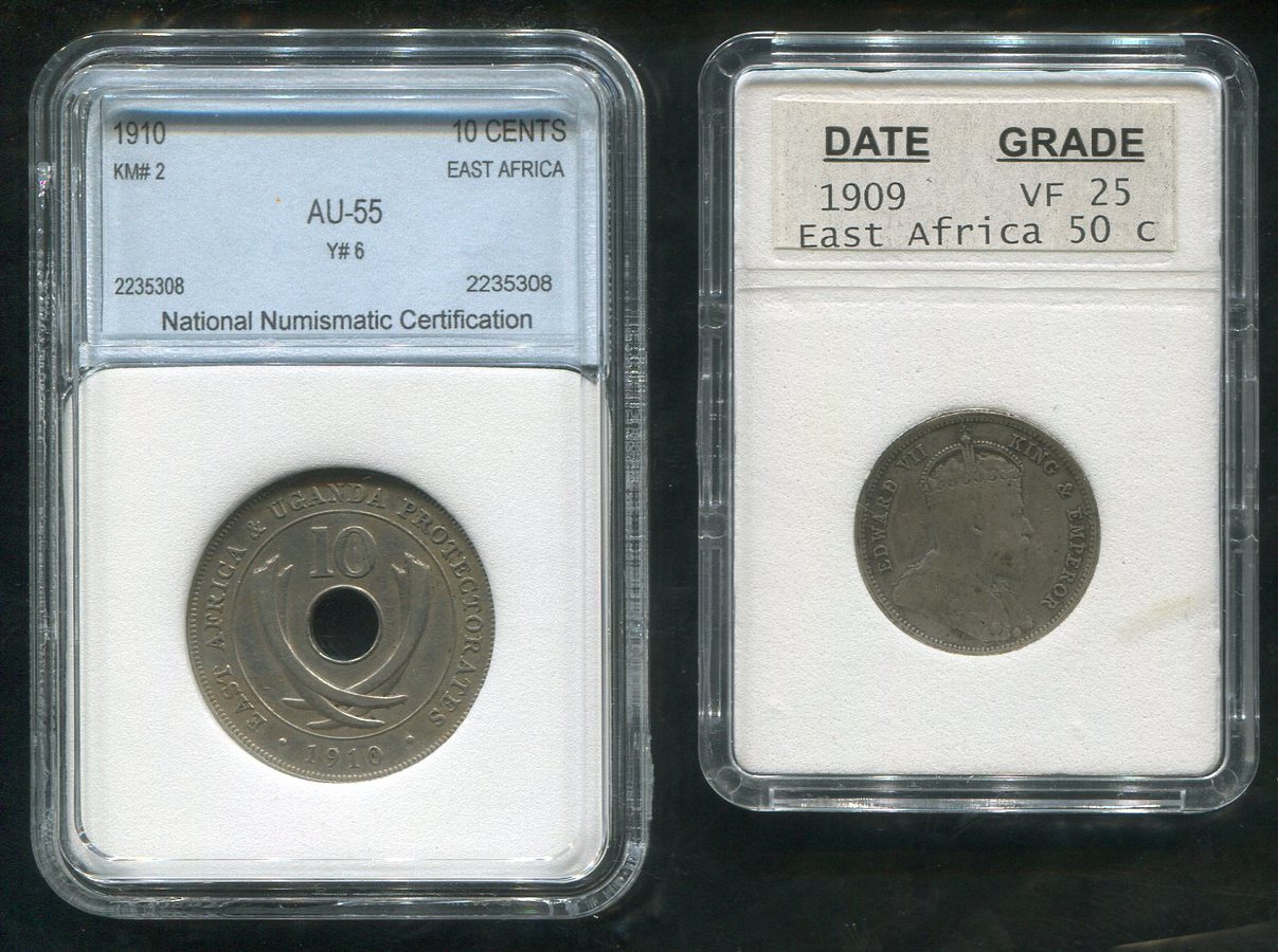 Набор из 2-х монет 10, 50 центов 1909 (Британская Восточная Африка) (в слабах)