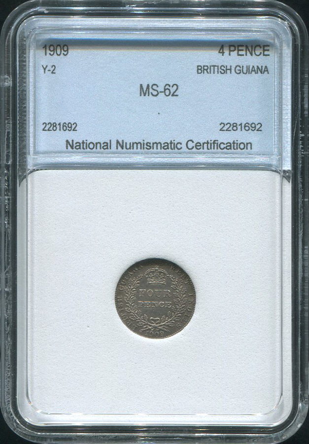 4 пенса 1909 (Британская Гвиана) (в слабе)