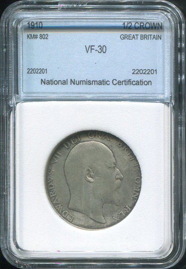 1/2 кроны 1910 (Великобритания) (в слабе)