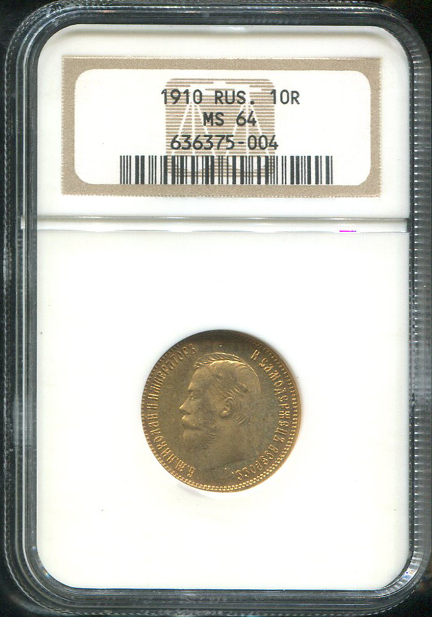 10 рублей 1910 (в слабе) (ЭБ)