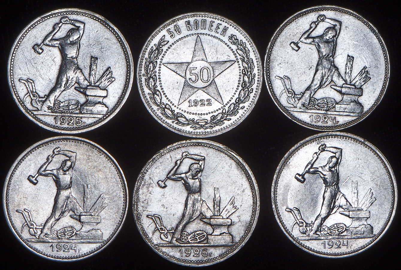 Набор из 6-ти сер. монет (РСФСР, СССР)