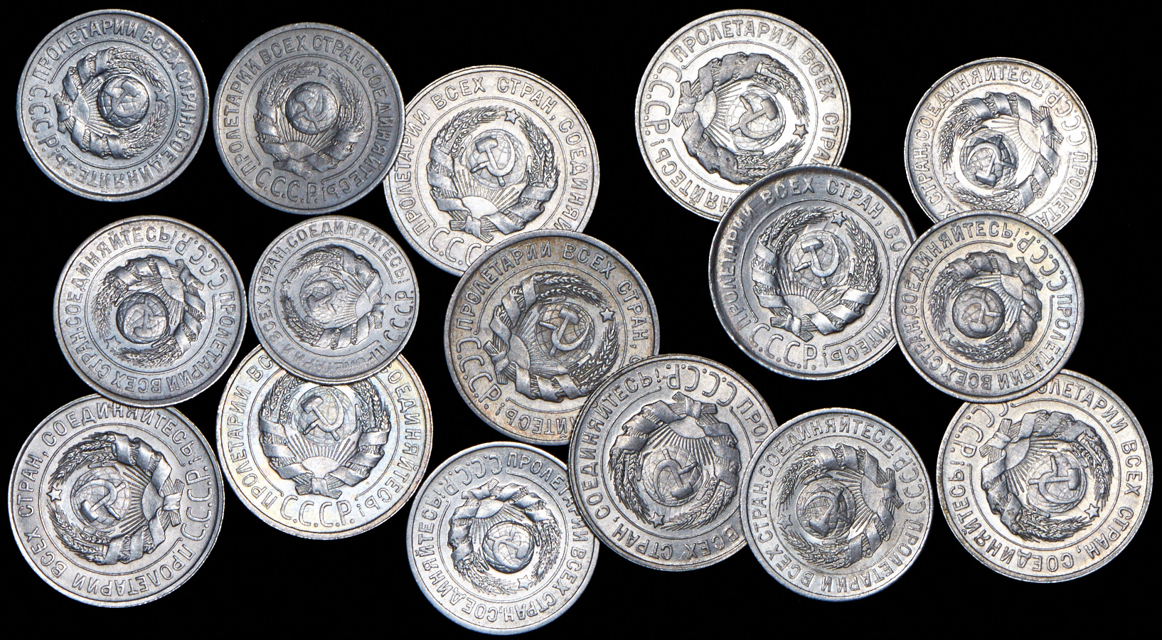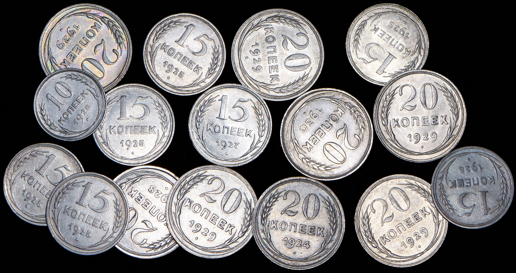 Набор из 16-ти сер. монет 10, 15, 20 копеек 1924-1930