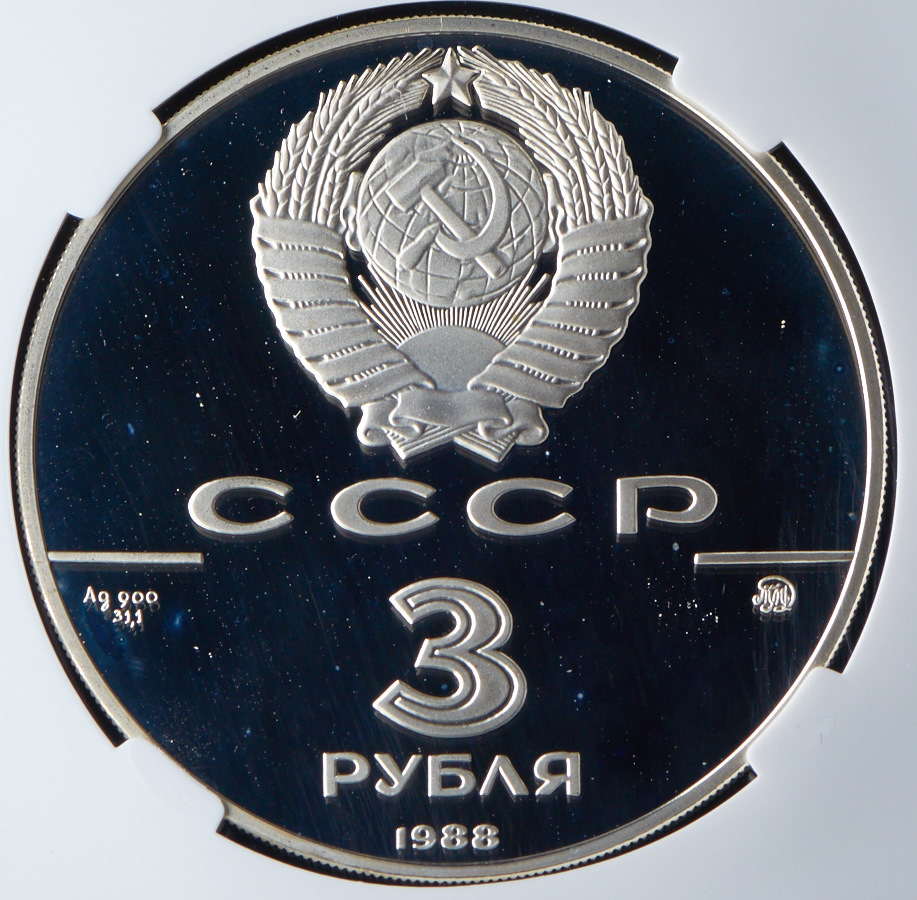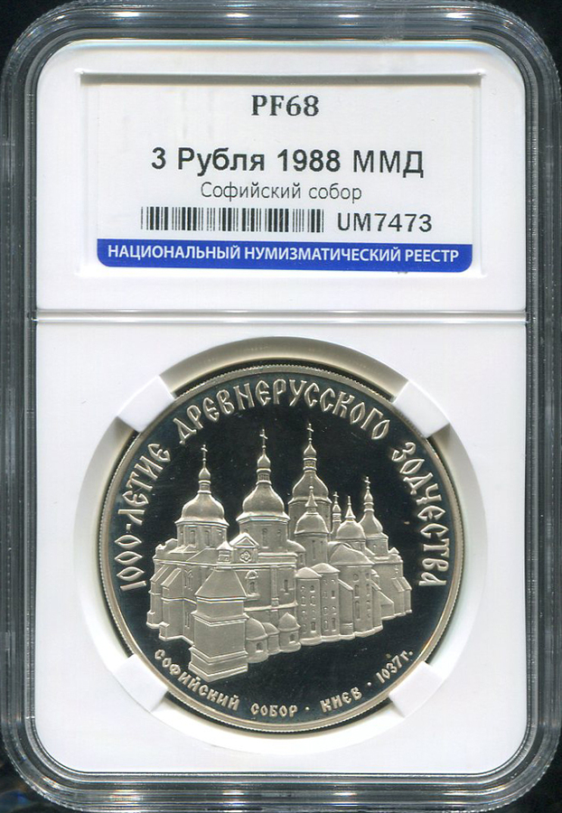 3 рубля 1988 "Софийский собор, Киев, 1037 г." (в слабе) ММД