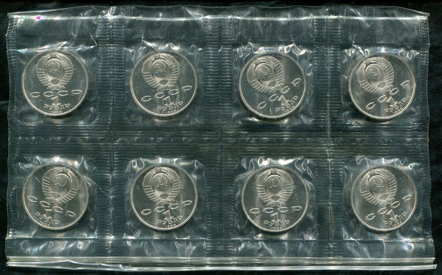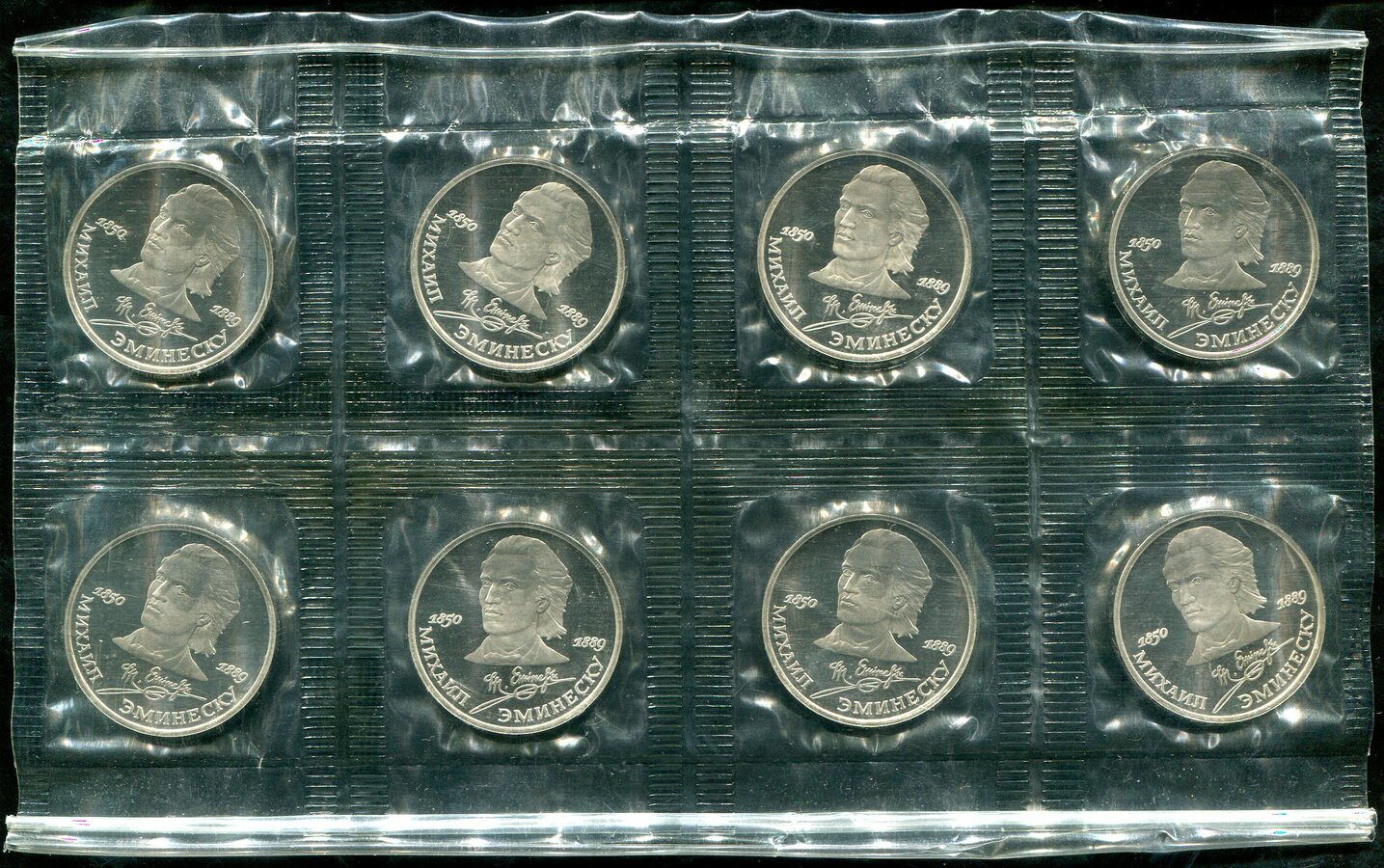 Набор из 8-ми монет Рубль 1989 "Михаил Эминеску" (в запайке)