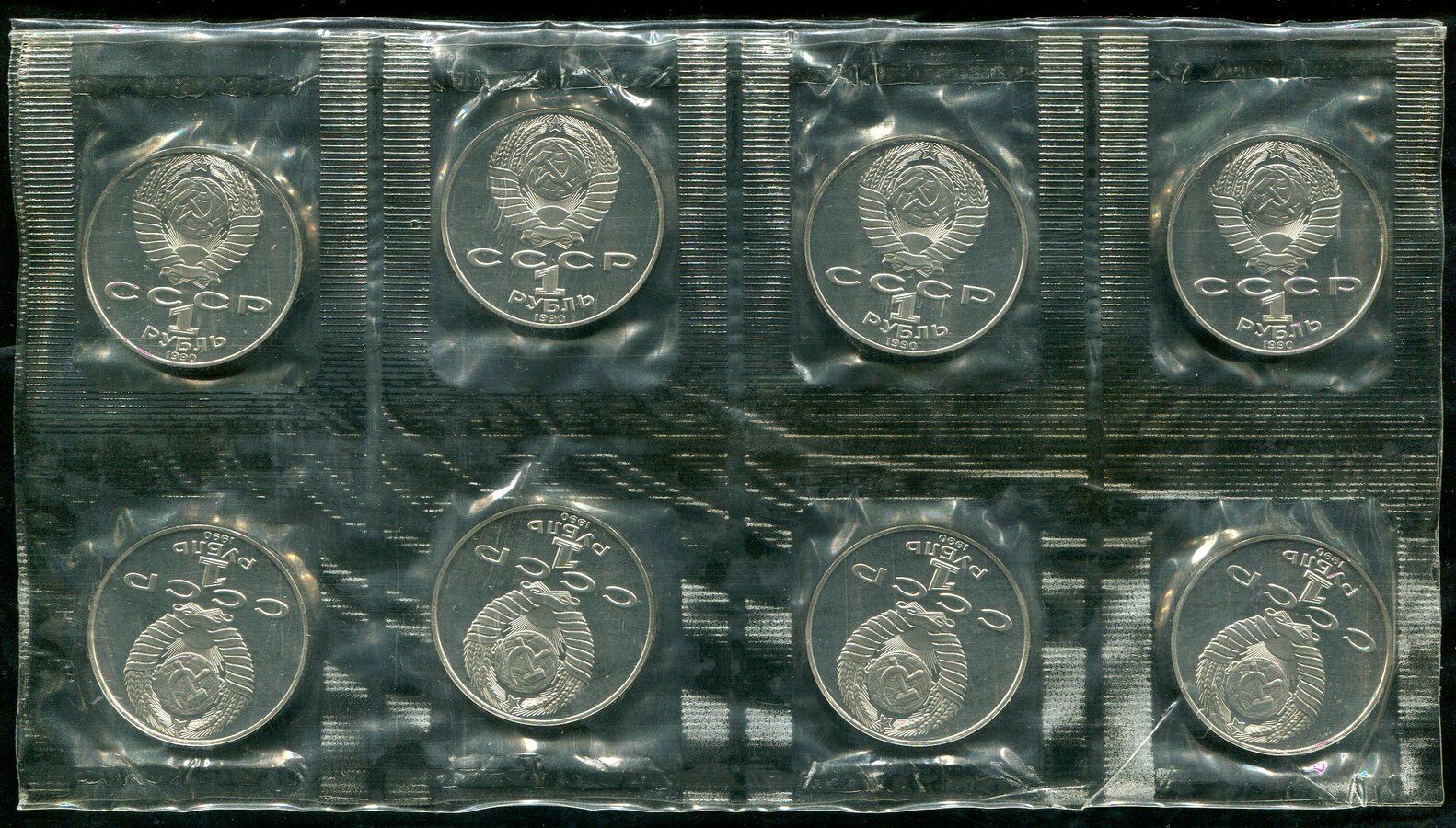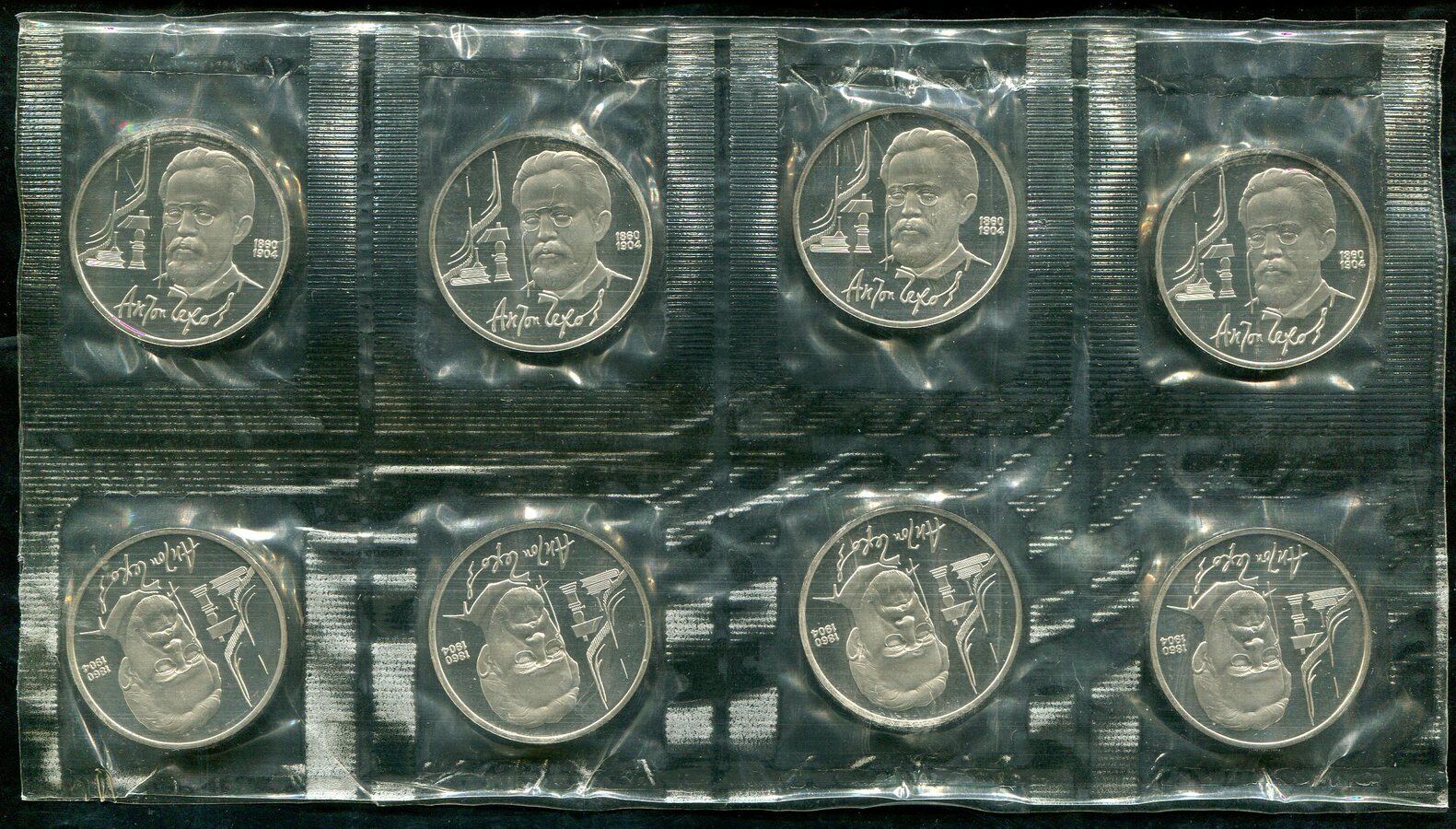 Набор из 8-ми монет Рубль 1990 "А. Чехов" (в запайке)