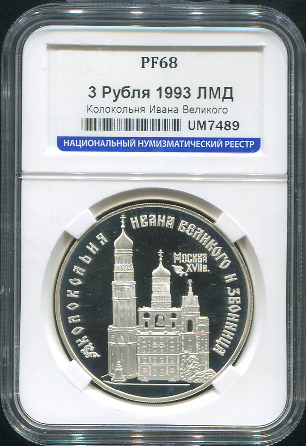 3 рубля 1993 "Колокольня Ивана Великого" (в слабе) ЛМД