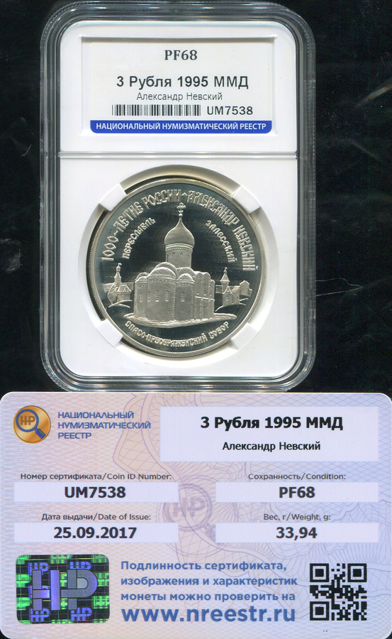 3 рубля 1995 "Переславль-Залесский: Спасо-Преображенский собор" (в слабе) ММД