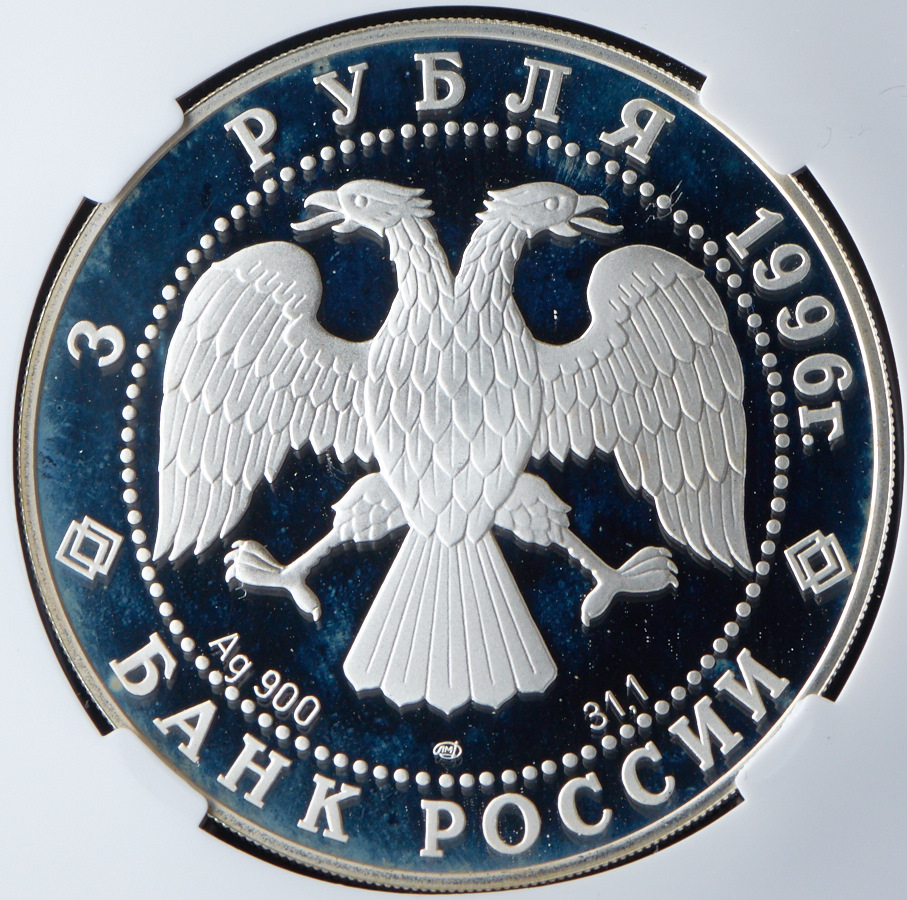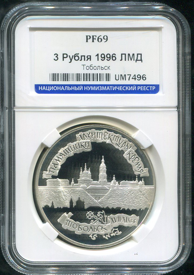 3 рубля 1996 "Тобольск" (в слабе) ЛМД