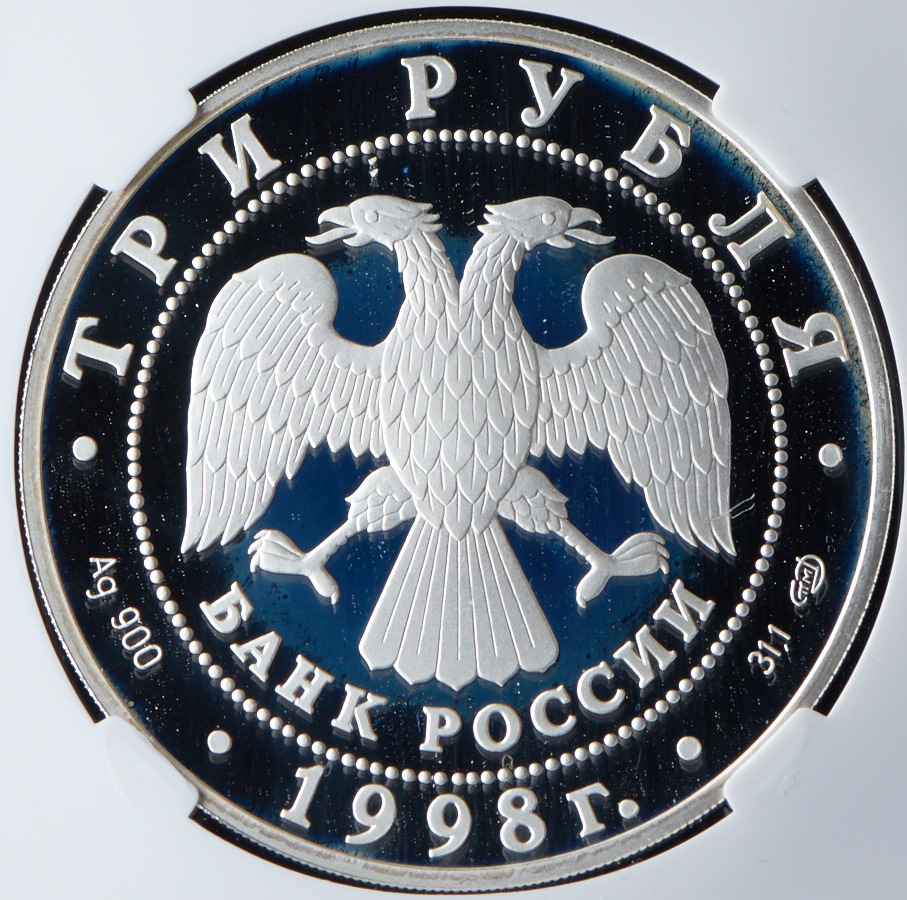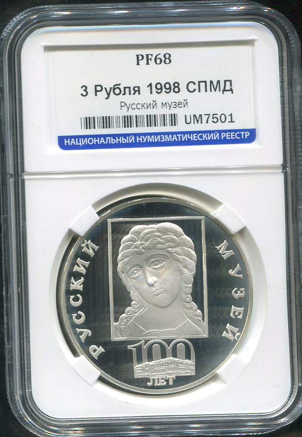 3 рубля 1998 "100-летие Русского музея: Ангел" (в слабе) СПМД
