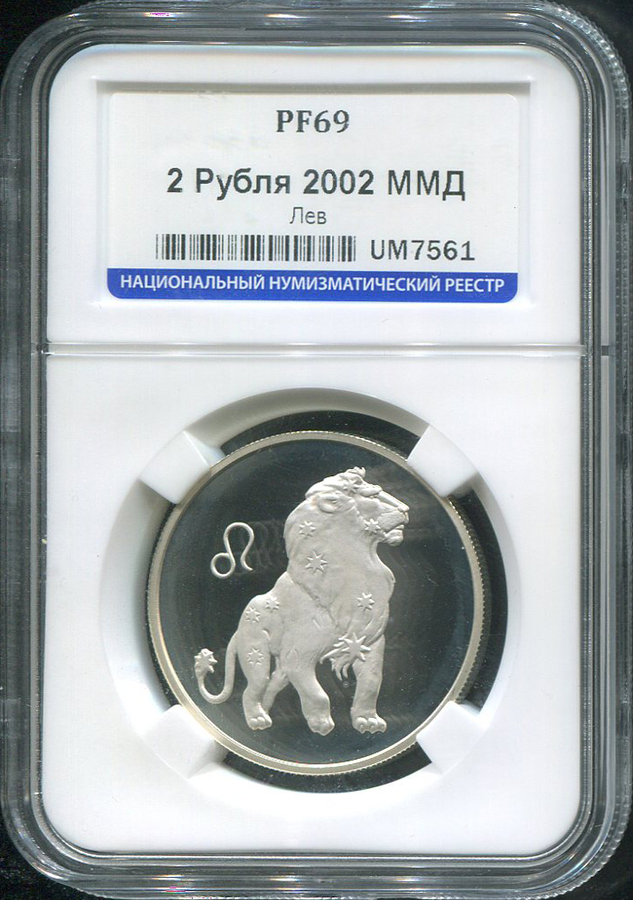2 рубля 2002 "Лев" (в слабе) ММД