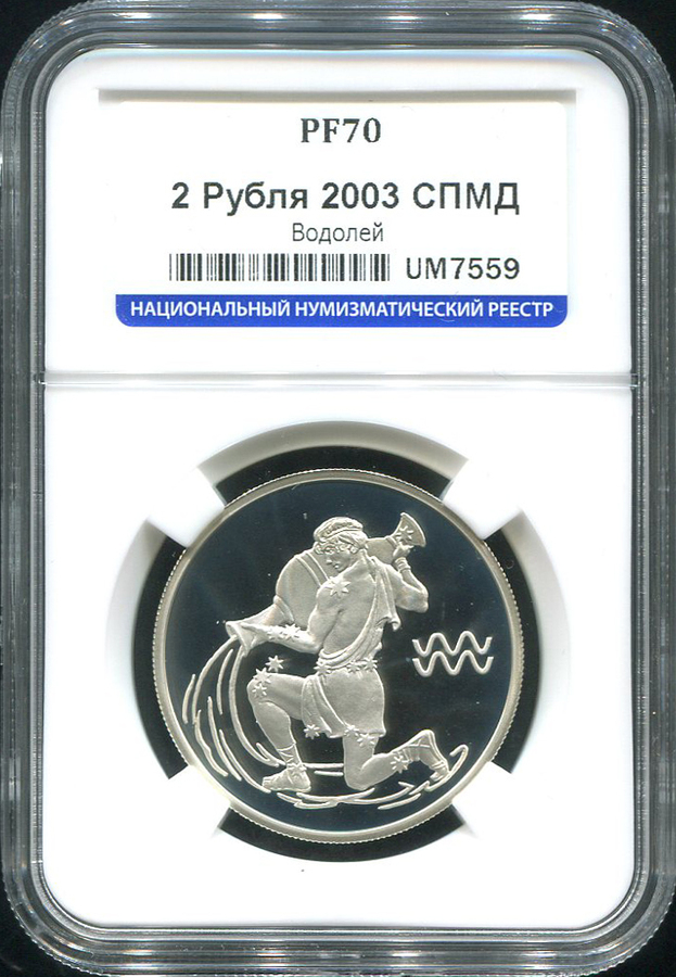 2 рубля 2003 "Водолей" (в слабе) СПМД