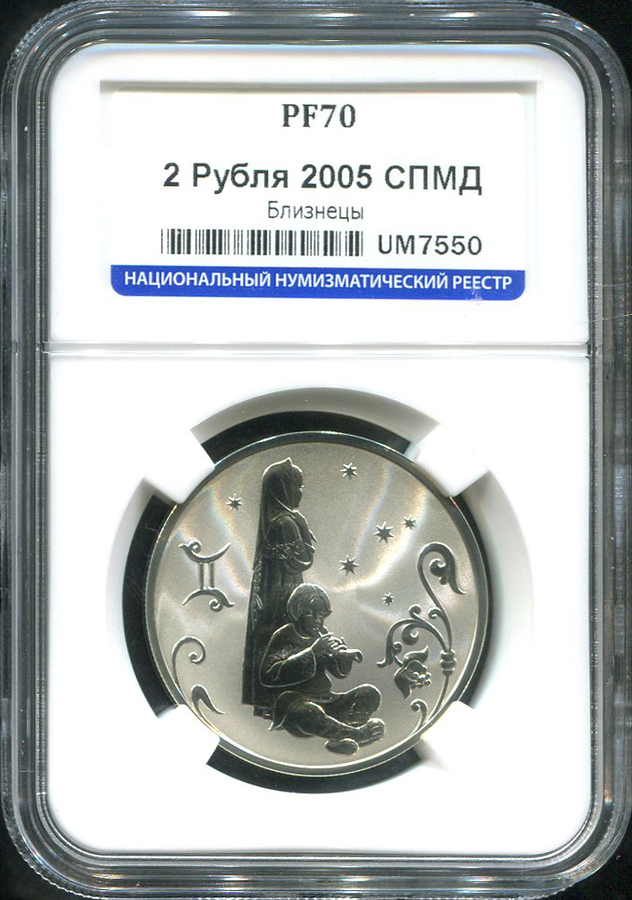 2 рубля 2005 "Близнецы" (в слабе) СПМД