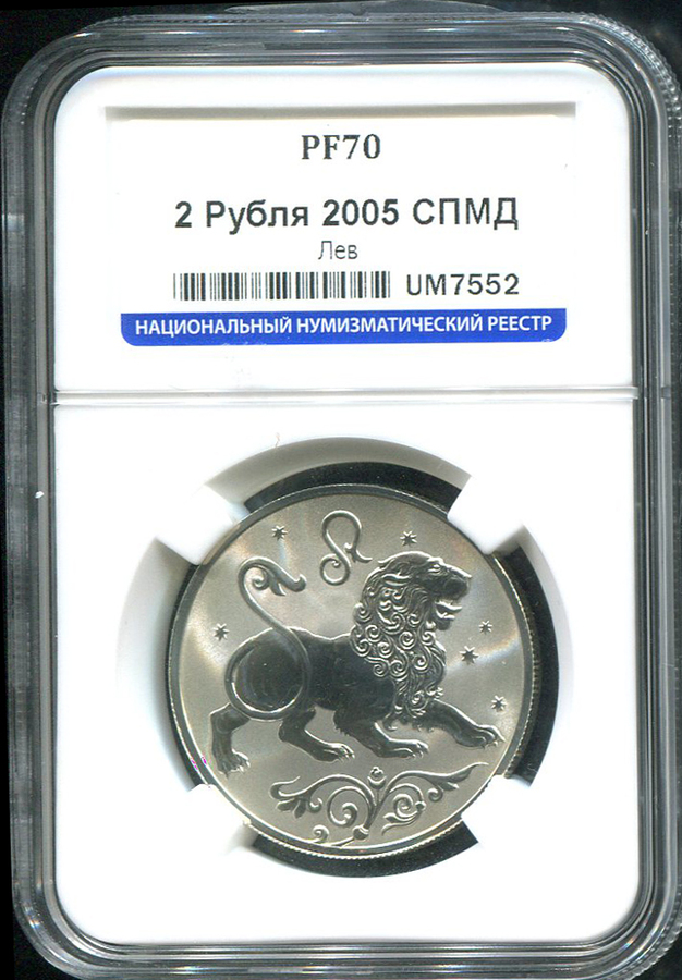 2 рубля 2005 "Лев" (в слабе) СПМД