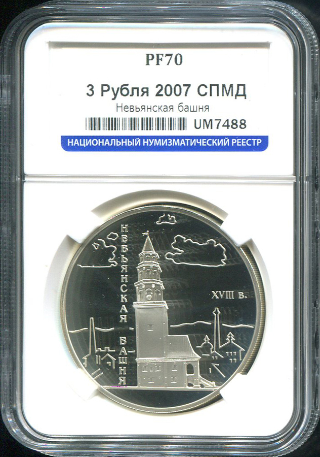 3 рубля 2007 "Невьянская башня" (в слабе) СПМД