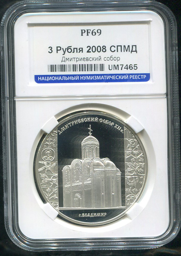 3 рубля 2008 "Дмитриевский собор, Владимир" (в слабе) СПМД