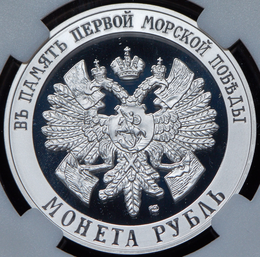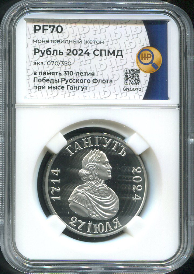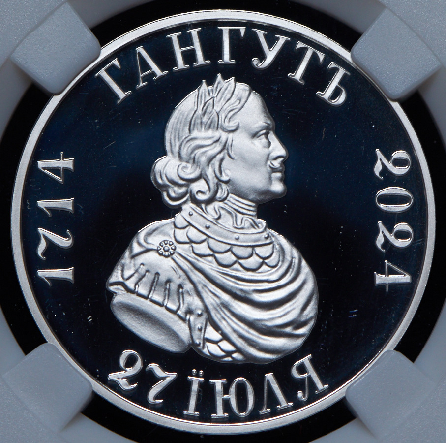 Памятный монетовидный жетон, приуроченный к 310-летию первой значимой победы Русского флота, произошедшей в 1714 году возле мыса Гангут.