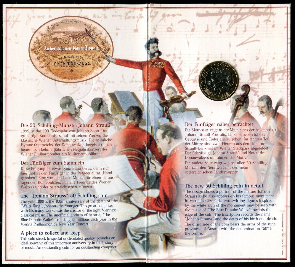 50 шиллингов 1999 "100 лет со дня смерти Иоганна Штрауса" (Австрия) (в п/у)