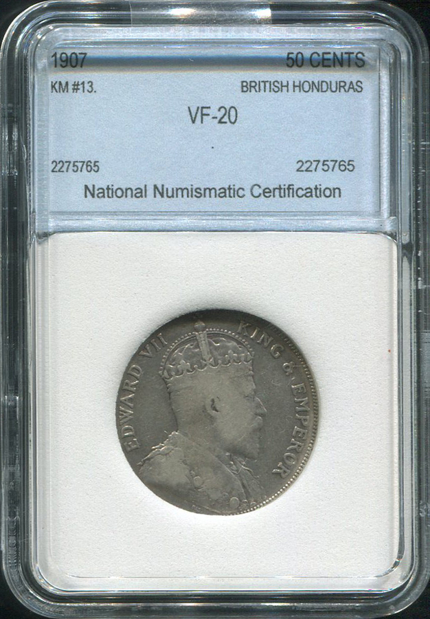 50 центов 1907 (Британский Гондурас) (в слабе)