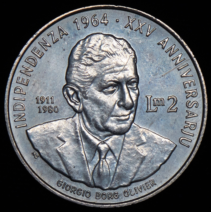 2 лиры 1989 "25 лет независимости" (Мальта)