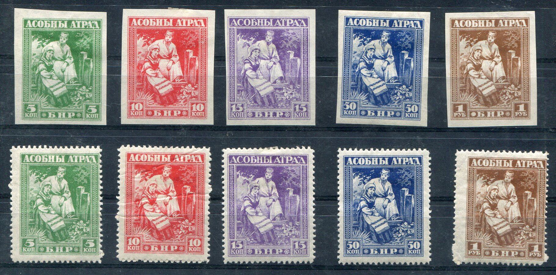 Комплект из 10-ти марок 1920 "Асобны Атрад. Б.Н.Р."