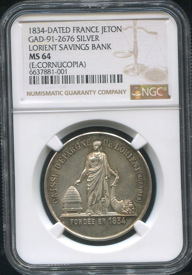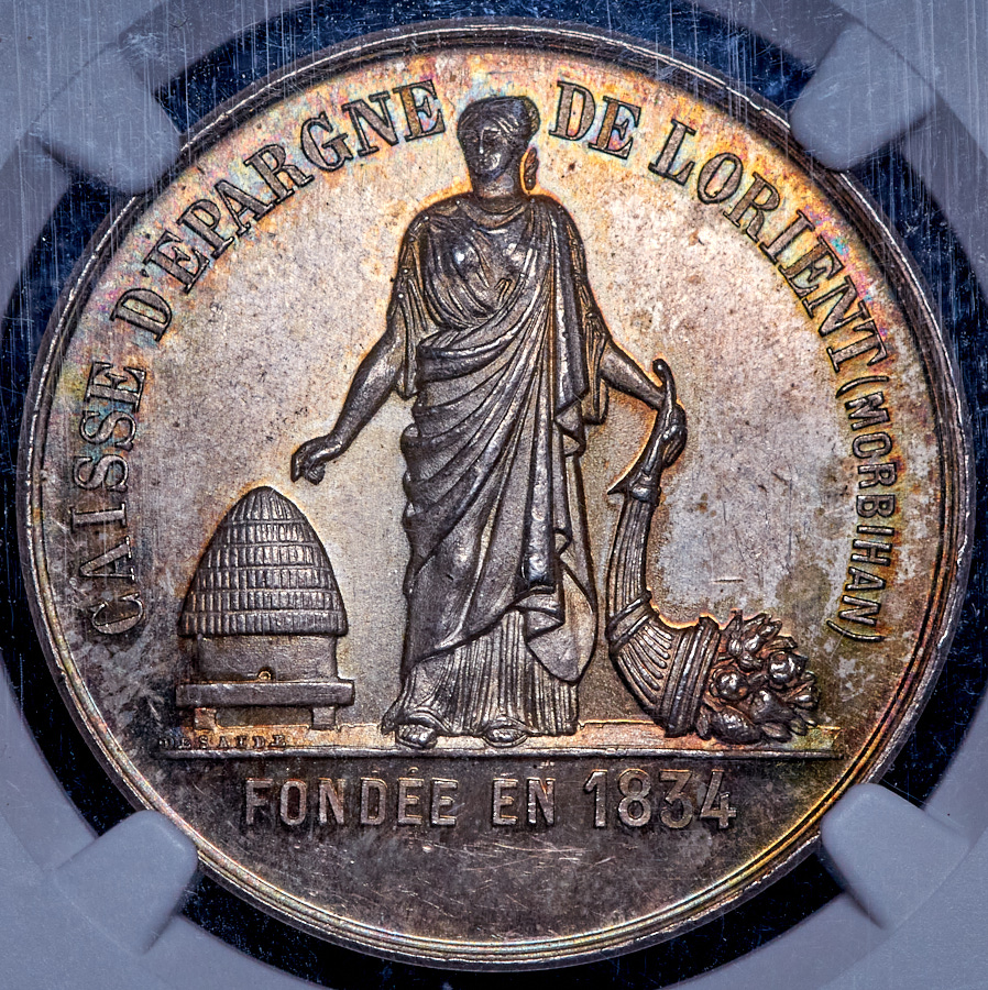 Медаль "Кассы взаимопомощи жителей г. Лорьяна" 1834 (Франция) (в слабе)