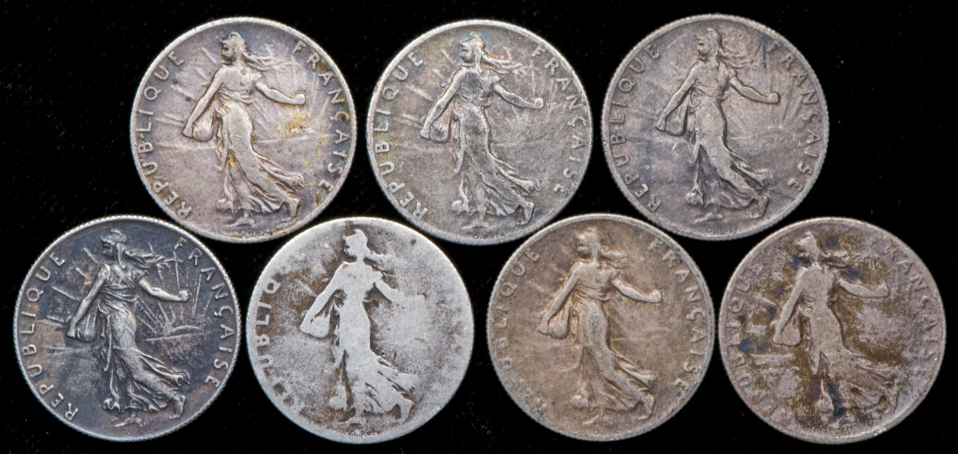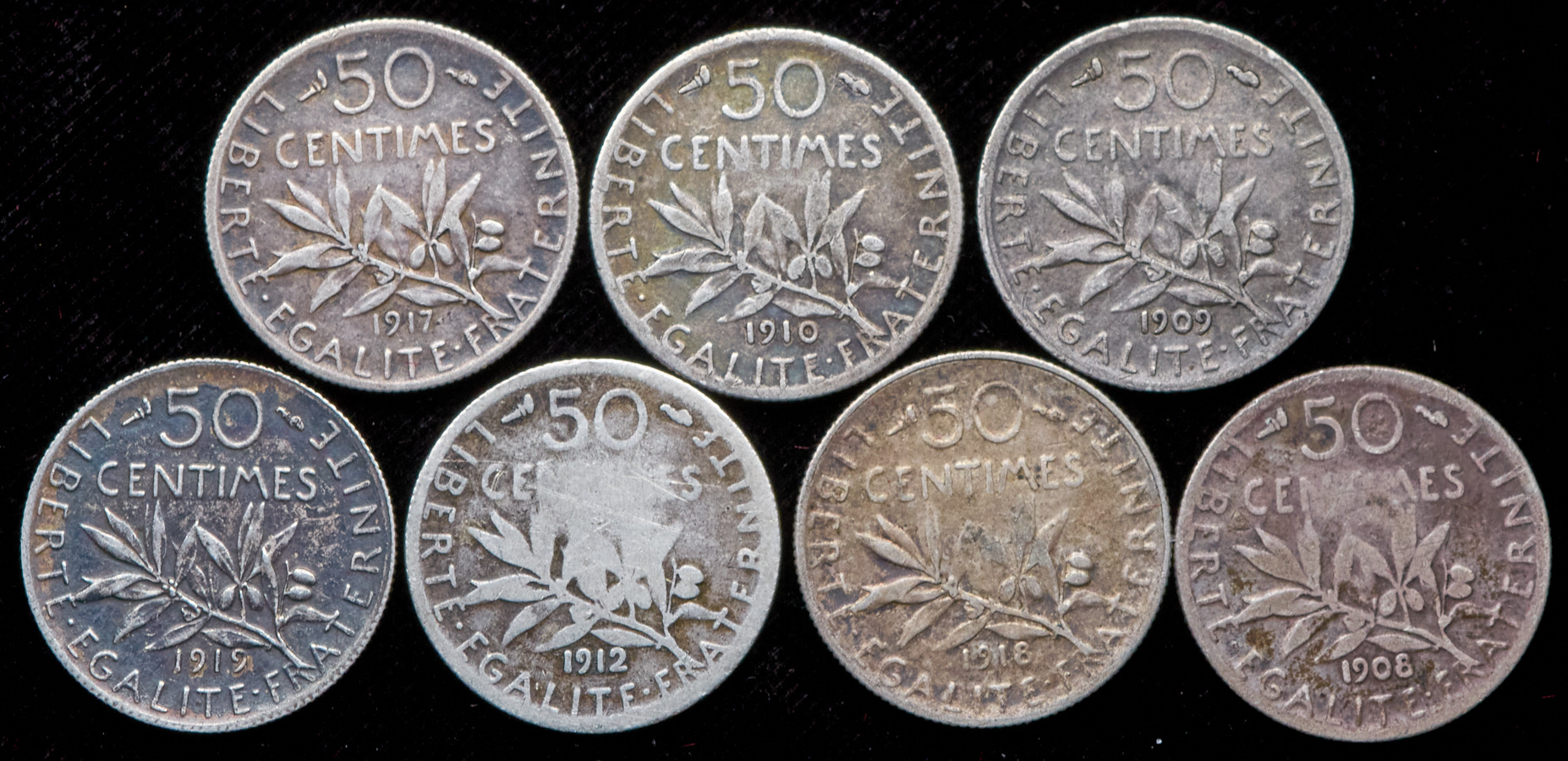 Набор из 7-ми сер. монет 50 сантимов (Франция)