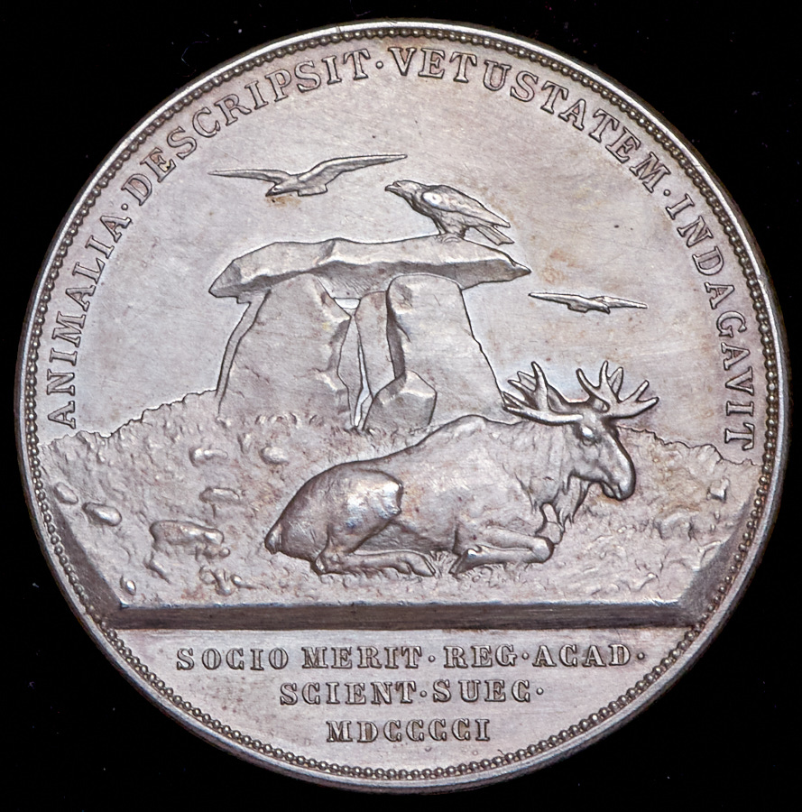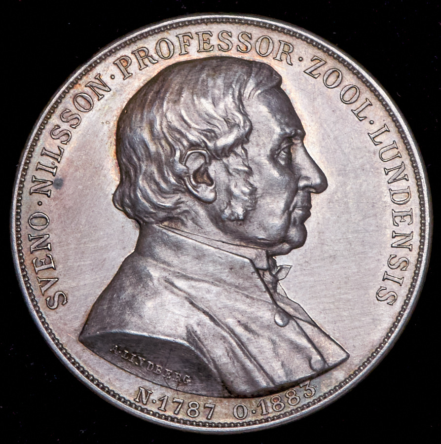 Медаль в память Свена Нильссона 1787-1883 – профессора зоологии. Швеция. Серебро. Диаметр 31 мм