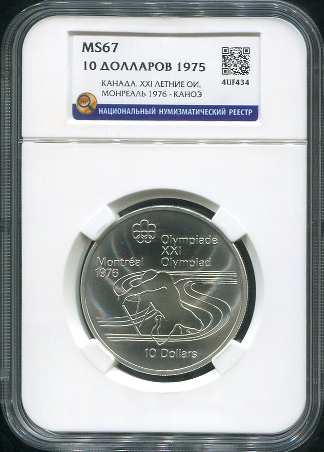 10 долларов 1975 "XXI летние Олимпийские Игры, Монреаль 1976 - Каноэ" (Канада) (в слабе)