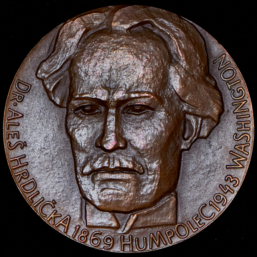 Алеш Хрдличка (Aleš Hrdlička 1869 - 1943) - чешский антрополог, с 1881 года жил и работал в США. Автор гипотезы о заселении Северной Америки через Берингов пролив. Автор теории о том, что эволюция человечества прошла через стадию неандертальцев. Член Национальной академии наук США (1921).