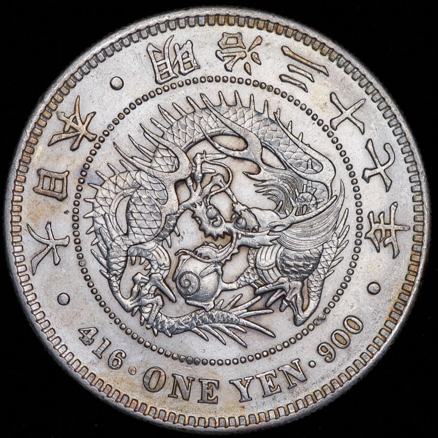 Y #A25.3, 37-й год правления императора Муцухито. Следы легкой чистки.