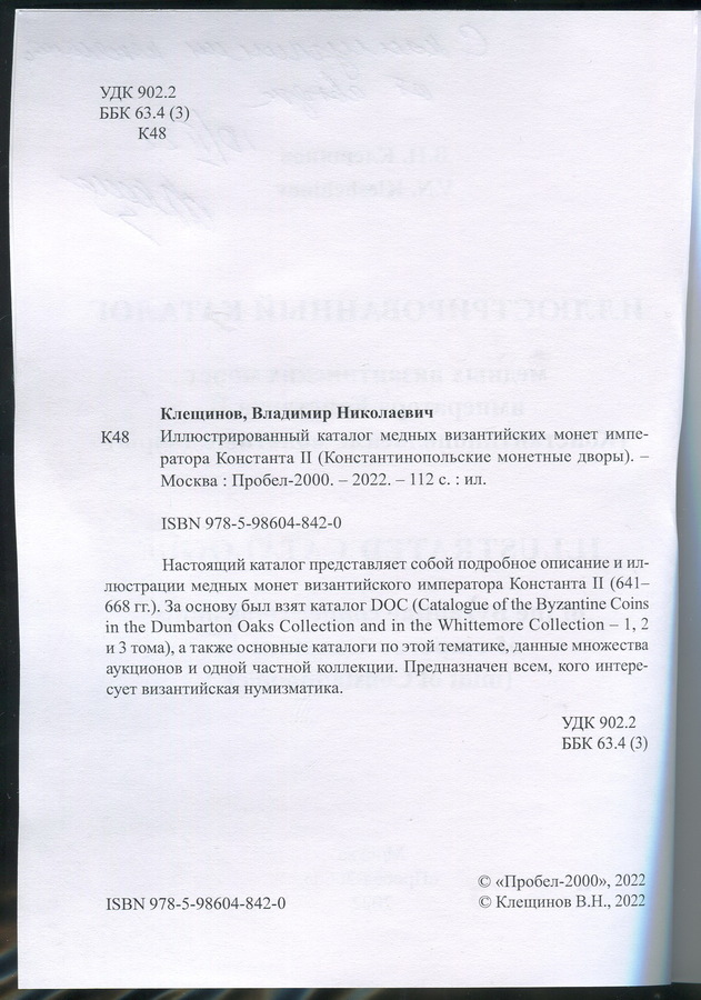 Книга Клещинов В.Н. "Иллюстрированный каталог медных византийских монет императора Константа II" 2022
