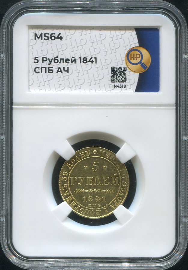 5 рублей 1841 (в слабе) СПБ-АЧ
