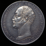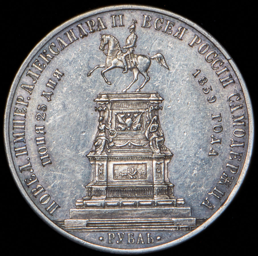 Чеканен по случаю открытия памятника императору Николаю I в Санкт-Петербурге. В обрезе шеи "А.Лялин". Плоский чекан.