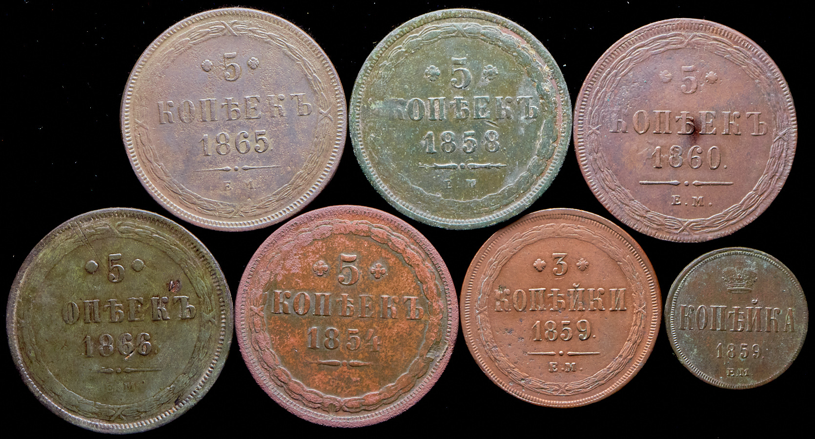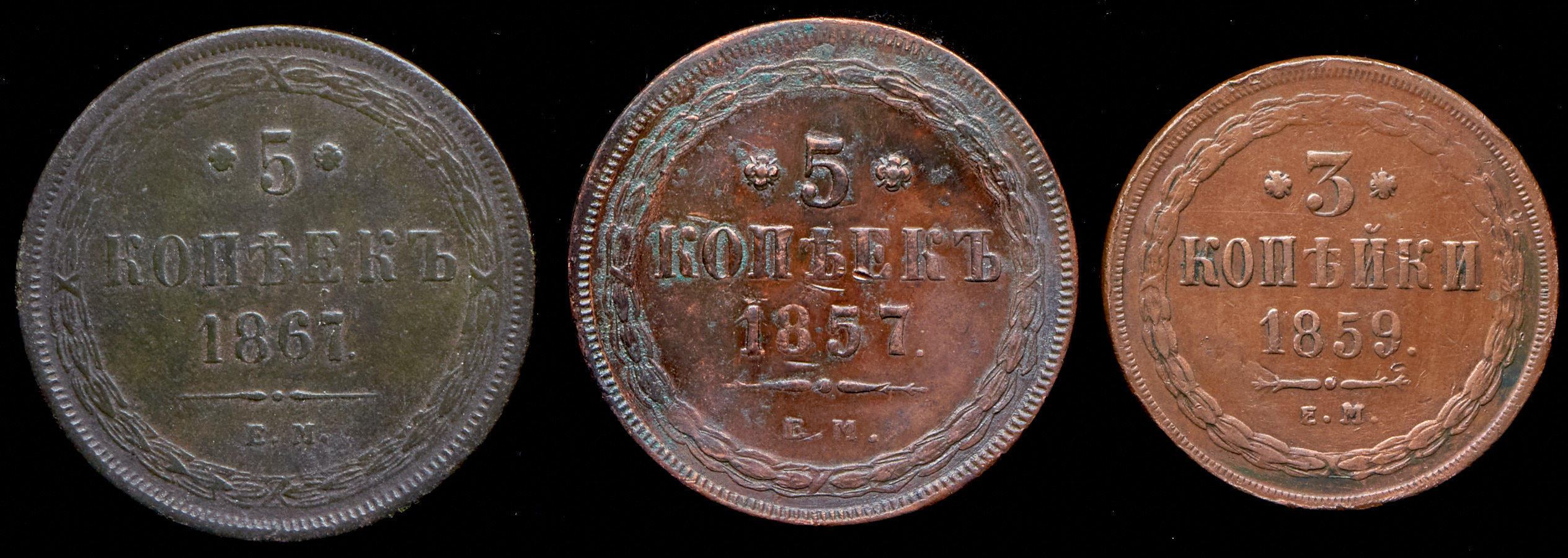 Набор из 10-ти медных монет 1, 3, 5 копеек