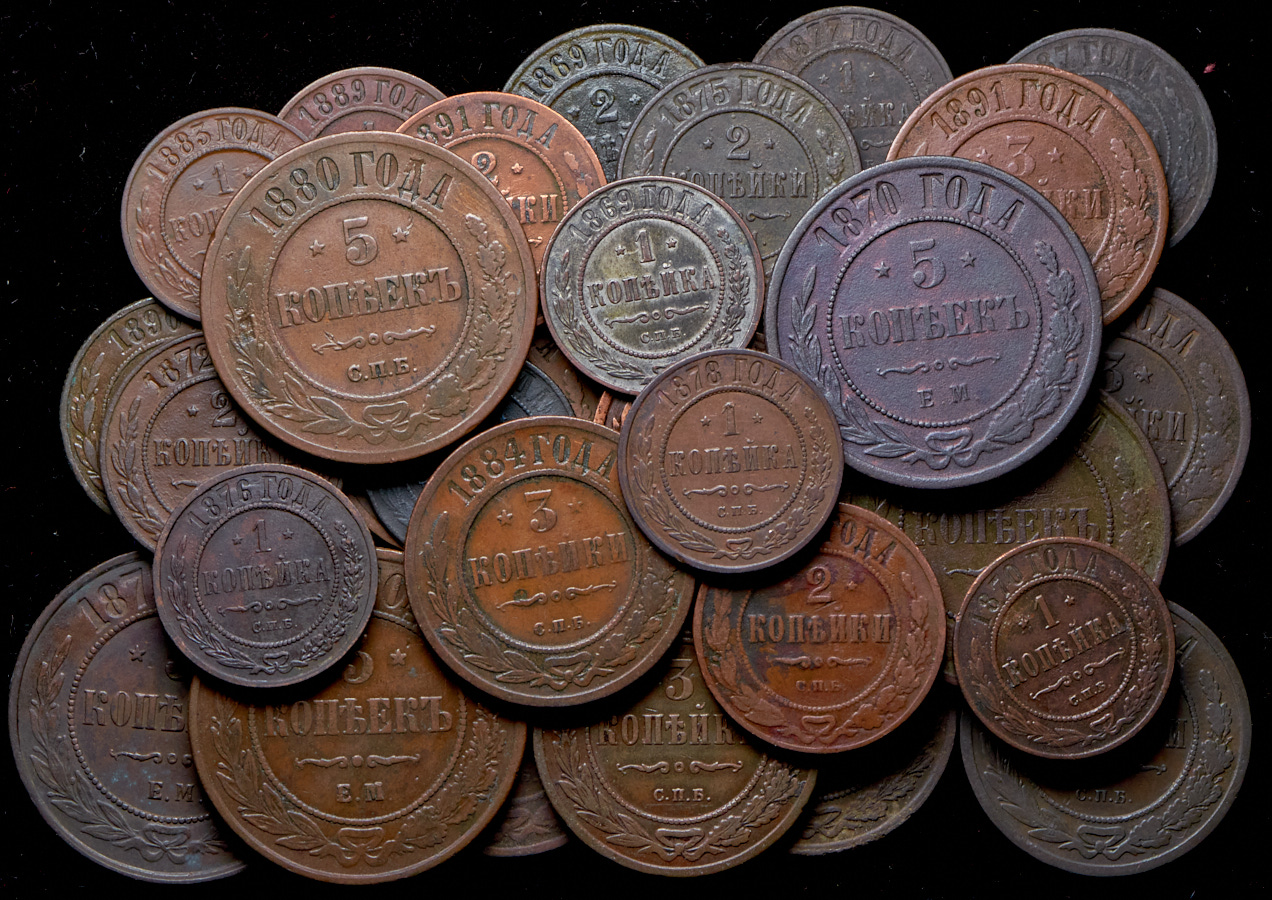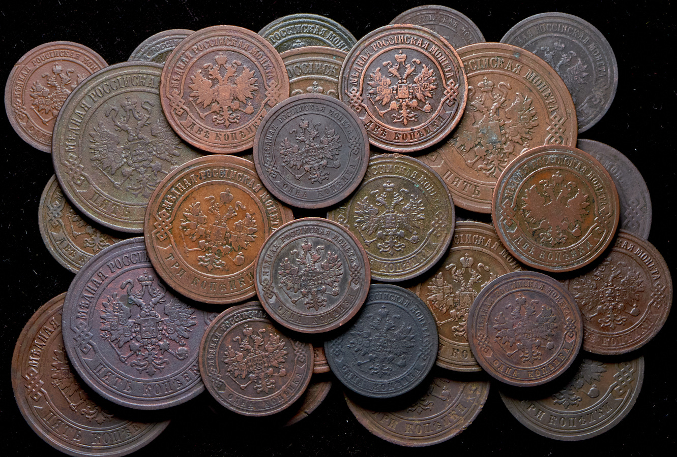 Набор из 25-ти медных монет 1, 2, 3, 5 копеек
