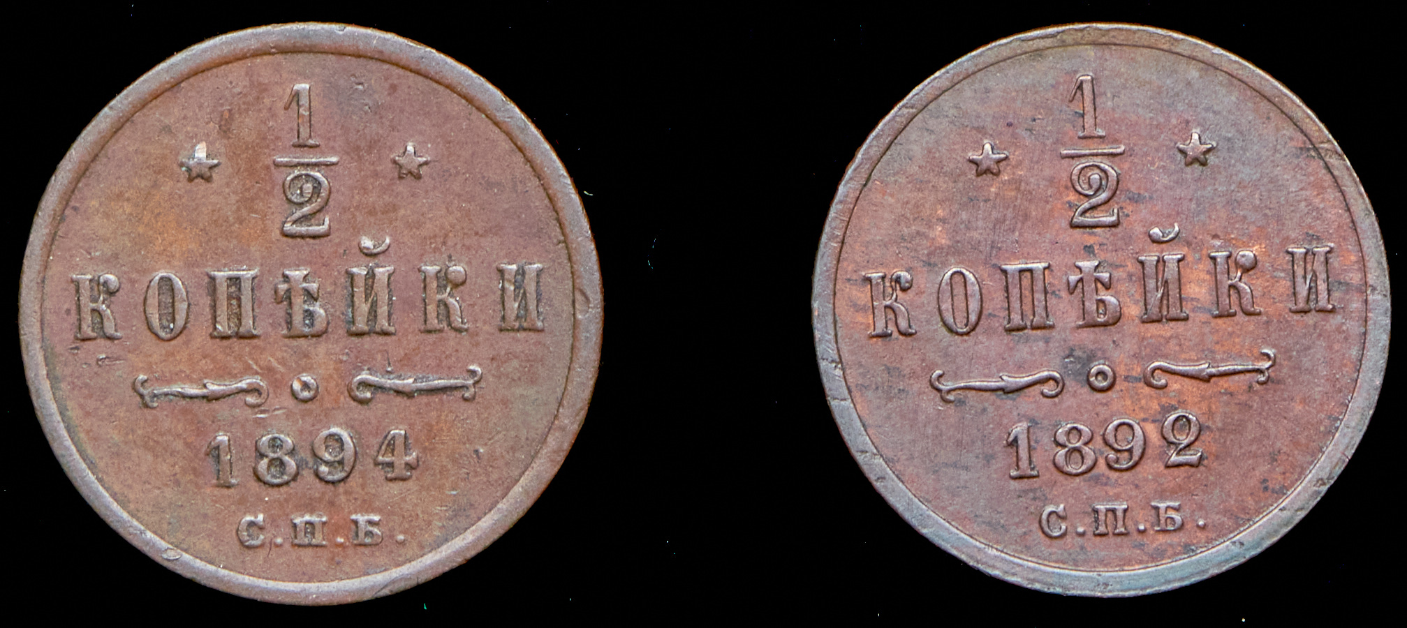 Набор из 2-х медных монет 1/2 копейки (Александр III)