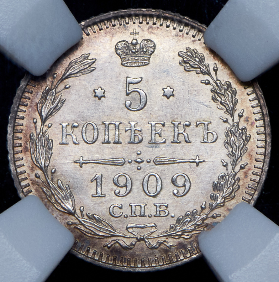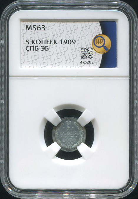 5 копеек 1909 (в слабе) СПБ-ЭБ