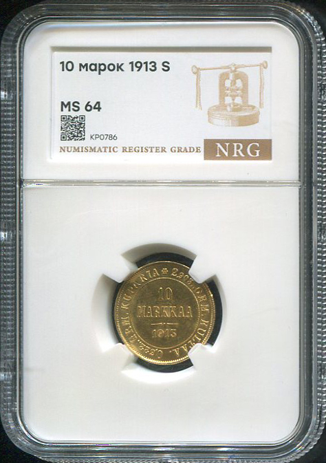 10 марок 1913 (Финляндия) (в слабе) S